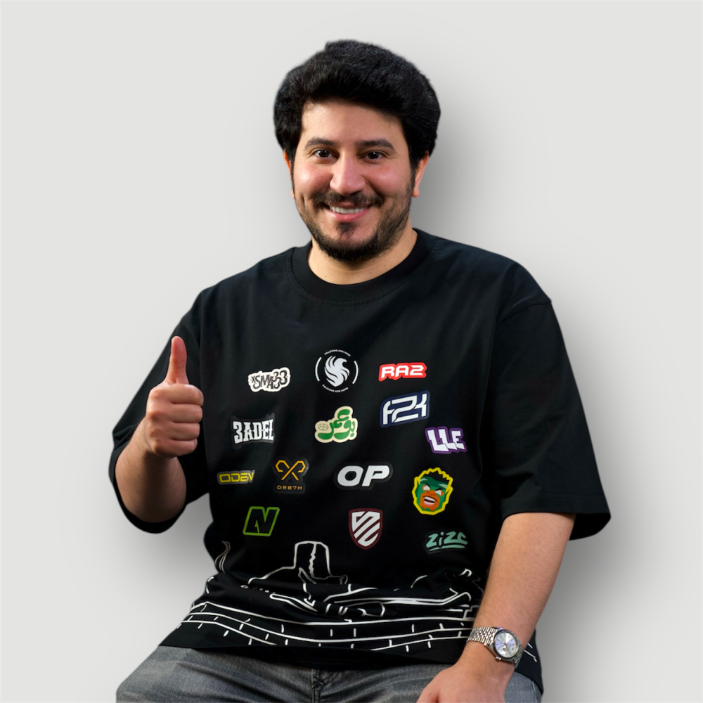 تيشرت مع طباعة جميع شعارات صناع المحتوى