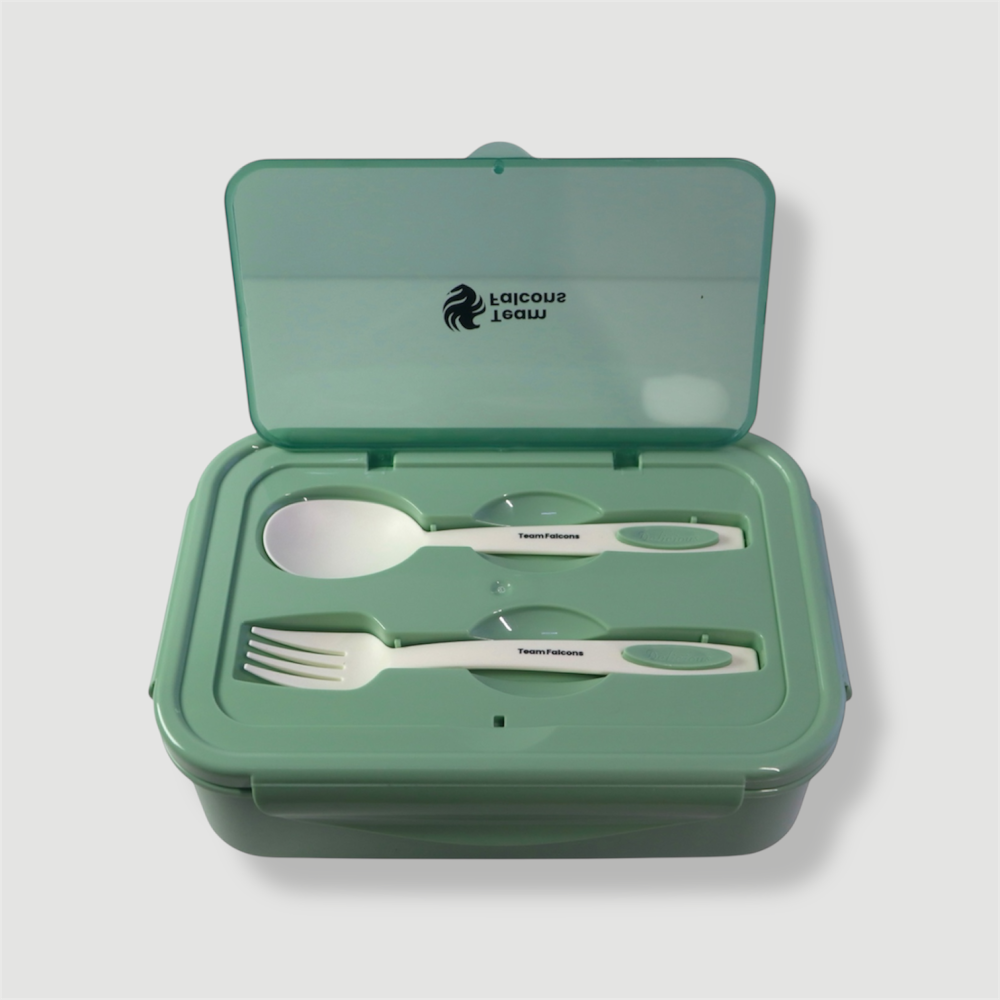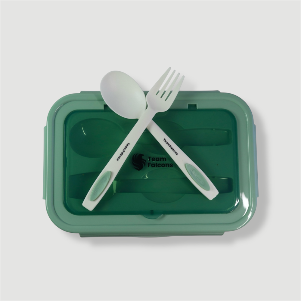 علبة اكل عليها شعار فالكونز، بسيطة وعملية تحفظ أكلك طازج وين ما رحت!
